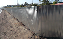 Якщо на період будівництва потрібно захистити територію, то використовують профнастил без декоративного полімерного покриття, позаяк це найдешевший і швидкомонтований матеріал, що закриває від сторонніх очей будівельний об'єкт. Для огорож використовується профлист із меншою висотою хвилі — так званий стіновий профнастил. |